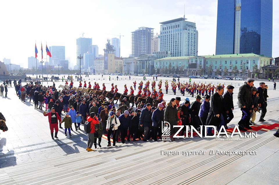 Их эзэн Чингис хааны мэндэлсний 856 жилийн ой, Монгол бахархалын өдрийг тохиолдуулан өнөөдөр /2018.11.08/ төр, засгийн удирдлагууд Чингис хааны хөшөөнд хүндэтгэл үзүүллээ. Үүний өмнө төрийн есөн хөлт цагаан цагаан сүлдийг Төрийн ёслол хүндэтгэлийн танхимаас гарган, есөн шарга морьтой торгон цэргүүд Д.Сүхбаатарын талбайг нар зөв тойрон цэнгүүлж, Төрийн ордонд буцаан залсан юм.