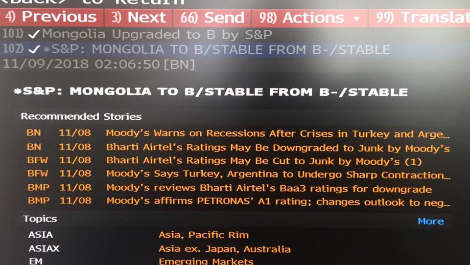 Олон Улсын зээлжих зэрэглэл тогтоогч Стандарт энд Пүүрс агентлагаас Монгол Улсын зээлжих зэрэглэлийг “B- тогтвортой” төлвөөс “B тогтвортой” болгон нэмэгдүүлснийг Сангийн сайд Ч.Хүрэлбаатар өчигдөр дуулгалаа. Манай улсын Зээлжих зэрэглэлийг нэмэхэд дараах хүчин зүйлсүүд голлон нөлөөлжээ.