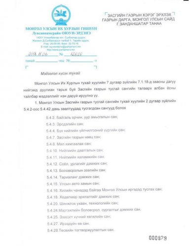 Засгийн газрын Хэрэг эрхлэх газрын дарга Г.Занданшатарт УИХ-ын гишүүн Л.Оюун-Эрдэнэ албан бичиг хүргүүлжээ. Тэрхүү албан бичигт Засгийн газрын 27 сангийн талаар мэдээлэл өгөхийг хүсчээ. Өөрөөр хэлбэл, УИХ-ын гишүүн Л.Оюун-Эрдэнэ дээрх мэдээллийг хүсэхдээ нэр бүхий гишүүдийг АТГ-ын хаалгыг татахад хүргэсэн Жижиг, дунд үйлдвэрийг хөгжүүлэх санд өнгөрсөн хугацаанд хэчнээн төгрөгийг хөрөнгө, мөнгө төсөвлөж, хэдэн хүнд зээл олгосон, тэдний хэд нь зээлээ хугацаандаа эргэн төлсөн зэрэг нарийн мэдээллийг өгөхийг хүссэн байна.