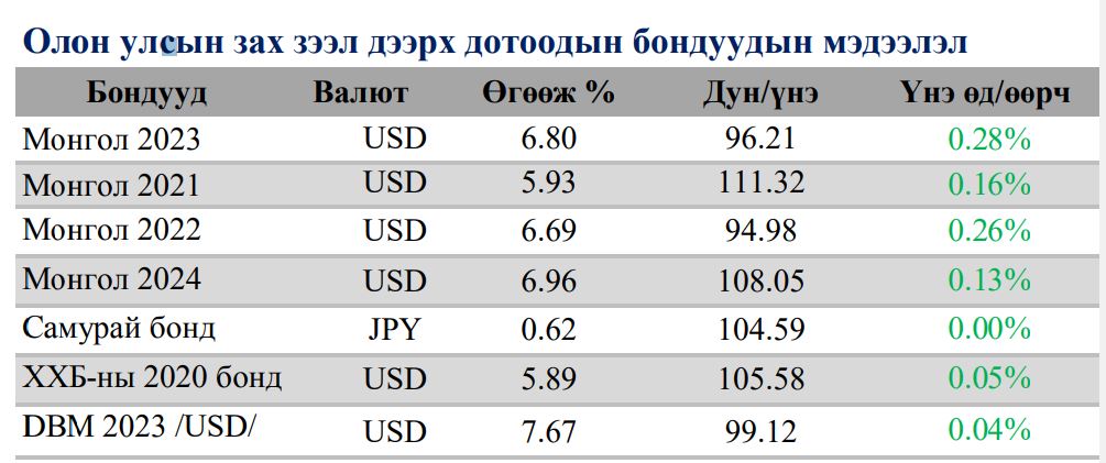 Бондуудын ханшийн мэдээллийг Хөгжлийн банкнаас дараах байдлаар өглөө.