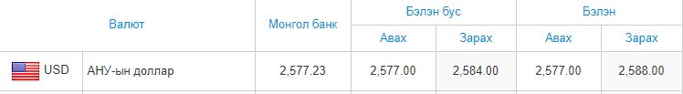 Ам.доллар эргээд чангарчээ. Арилжааны банкуудын ханшийг харахад Хаан банк 2578 төгрөгөөр авч, 2584 төгрөгөөр зарж байгаа бол, ХХБ ам.долларыг бэлэн бусаар бол 2577 төгрөгөөр авч, 2584 төгрөгөөр зарж байна. Харин бэлнээр авах ханш 2577, зарах ханш 2588 төгрөг байна. Тэгэхээр ам.долларын ханшийн сүүлийн өдрүүдийн өсөлтийн хүрээд буй хэмжээ өнгөрсөн есдүгээр сарын өсөлттэй харьцуулахад 70 гаруй төгрөгөөр өссөн үзүүлэлт юм.