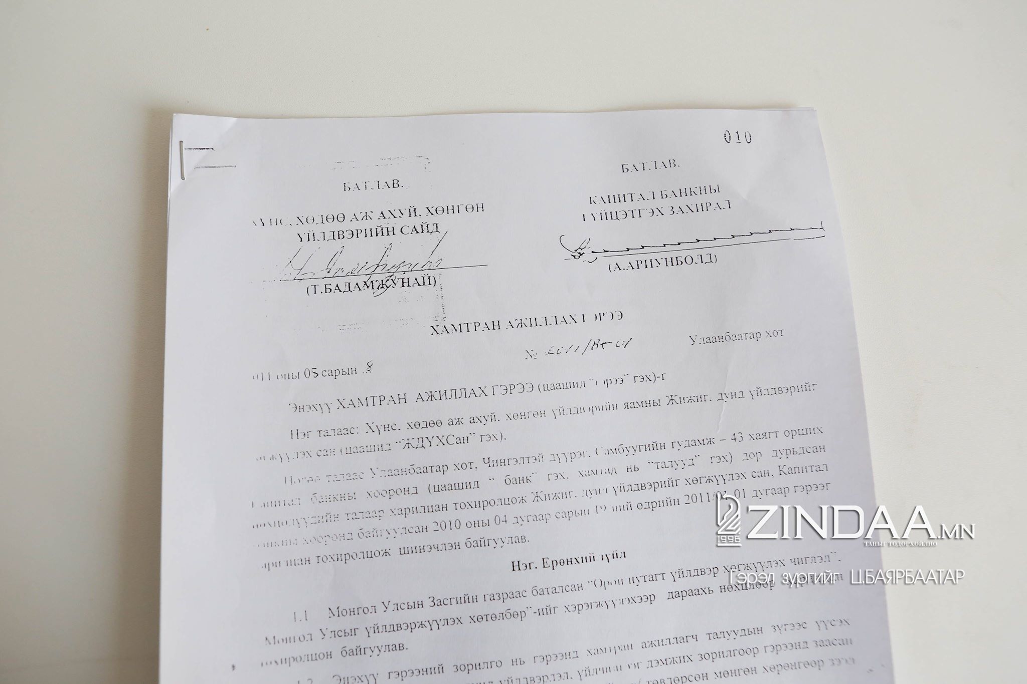 Үргэлжлэл: 2011 онд ЖДҮХС-аас авсан хөнгөлөлттэй зээлийн дуусах хугацаа нь 2014 он, 2013 онд Капитал банкаас авсан өндөр хүүтэй 100 сая төгрөгийн зээлийн төлөгдөж дуусах хугацаа нь мөн 2014 он. Гэтэл хуваарийн дагуу төлөгдөөд явж байсан зээлүүдийг төлөгдөх хугацаа хэтэрсэн гэж Капитал банк үзэн, үнэ тогтворжуулах хөтөлбөрөөс олгосон 500 сая төгрөгийг шууд суутгаад авчихсан нь хачирхалтай. ”Гүнжийн даваа” ХХК-ийн эргэн төлөлт асуудалгүй гэдгийг БХЯ-нд тайлагнахдаа Капитал банк албан бичгээр өөрсдөө баталгаажуулсан. Гэтэл байдал ийм болсон болохоор компани Капитал банкийг шүүхэд өгчээ. Гэвч тусыг эс олов. /Үргэлжлэлийг ВИДЕО хэсгээс үзнэ үү/.