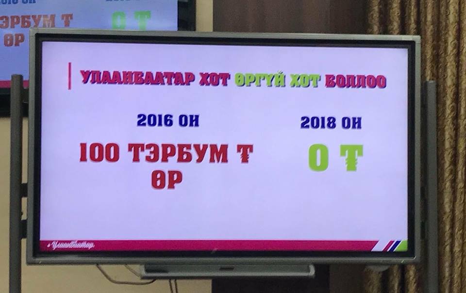 Нийслэлийн өмнөх удирдлага 2012-2016 онд концессын олон төсөл хэрэгжүүлсэнтэй холбоотойгоор Улаанбаатар хотод концессын 80 гаруй тэрбум төгрөгийн өр төлбөр үүсээд байсан. Хэдий нийслэлийн эдийн засаг хүнд байсан ч хотын удирдлагын баг өмнөө тавьсан зорилтоо биелүүлэн, төсвийн орлогоо давуулан биелүүлж, аж ахуйн нэгжүүдэд концессын эргэн төлөлтийг хийснээр Улаанбаатар хот өргүй болжээ.