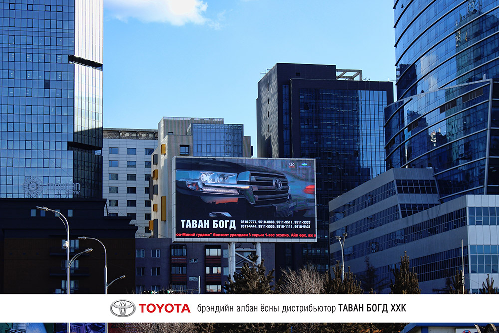 Төрийн ордон болон "Central Tower"-ын өөдөөс харан, Гадаад хэргийн яамны хажууд байрласан "Нийслэл дэлгэц" сурталчилгааны самбар нь дунд болон дундаас дээш зэрэглэлийн зорилтот хэрэглэгчдэд хамгийн сайн хүрэх ЛЕД дэлгэц бөгөөд Монголын анхны Контентын бодлоготой дэлгэц гэдгээрээ бусдаас ялгардаг.