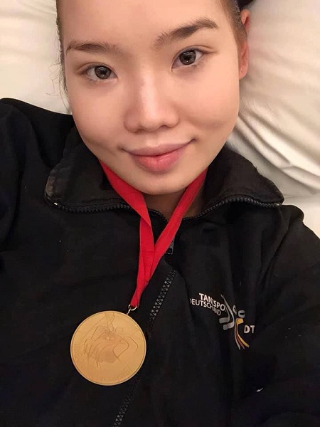 Бүжигчин охин өөрийн цахим хуудсаараа баяраа хуваалцахдаа “Би Дэлхийн аваргын алтан медалийг зүүх бүрэн эрхтэй хүн” гээд Дэлхийн аваргын алтан медалийг энгэртээ зүүх нь маш олон зүйлийг надад ухааруулж, ойлгуулж өгч буй мэт... 17 жилийн минь хөдөлмөр, хөлс хүчээс гадна ганцхан би гэлтгүй миний аав, ээжийн хөдөлмөр энэ медальд бүрэн шингэсэн гэж хэлмээр байна. 2018 он тэр чигтээ их олон амжилт дагуулсан, чанга жил байлаа, миний хувьд. Хичээл, ажил, бэлтгэл гурвыг нэгэн зэрэг амжуулахаас гадна гол нь сайн гүйцэтгэгч байх нь хэцүү байлаа. Уйлаад орондоо орох маш олон өдрүүд байсан ч маргааш өглөө бүрт шив шинэ хүн болсон мэт илүү ухаалаг, илүү тэвчээртэй, илүү хүчирхэг охин болж иржээ. Мэдээж хүний нутаг амжилт гаргая гэвэл бүх зүйл хоёр, гурав дахин хэцүү өрсөлдөөнтэй, маш хатуу байдаг юм билээ. Гэхдээ одоо л би яг өөрийгөө олсон мэт санагдаж байна. Үнэхээр сул талуудаа харж мэдэх тусам өөртөө илүү дуртай бас хайртай болдог юм билээ. Тэмцээн дуусан дуустал бодож ч байгаагүй, болж ч байгаагүй хэцүү саад бэрхшээлүүд дараалан гарч ирсэн” хэмээжээ.