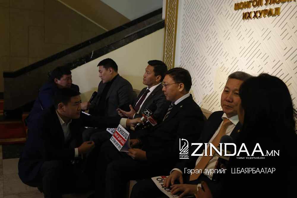 -Хуульд УИХ-ын даргыг хүндэтгэн үзэх шалтгаанаар албан үүргээ хүлээлгэж өгнө гэж тодорхой заасан байдаг. Хүндэтгэж үзэх шалтгаан нь иргэдийн шаардлага, хүсэлт юм. Аль ч сум, багт очсон хэлээд өгнө. Бид 14 хоног хүлээлээ, харлаа. Энэ хугацаанд тодорхой хэмжээнд төрийн ажил гацлаа. Өнөөдөр хүртэл ирээгүй гишүүдийн картыг хийж, чуулганы хуралдааныг эхлүүлсэн мэдээлэл байна. Энэ бол хуулийн том зөрчил. Энэ зөрчлийг таслан зогсоохыг шаардана. Хуульд заасан үндэслэлээр УИХ-ын даргыг үүрэгт ажлаасаа чөлөөлөгдөхийг шаардаж байна. Өнөөдрөөс дараагийн арга хэмжээнд орж байна.