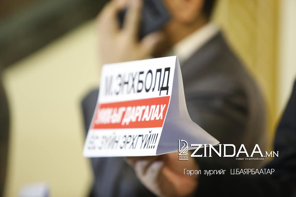 УИХ-ын гишүүн Ж.Батзандан, Л.Оюун-Эрдэнэ, Б.Энх-Амгалан, Т.Аюурсайхан, Л.Болд нар УИХ-ын дарга М.Энхболдыг албан тушаалаа хүлээлгэж өгтөл чуулганы нэгдсэн хуралдаанд суухгүй гэж мэдэгдээд байна. Тэд Төрийн ордонд, УИХ-ын чуулганы танхимын үүдэнд суулт хийж, Үндсэн хууль зөрчсөн УИХ-ын дарга М.Энхболдыг огцрохыг шаардаж байна. Гишүүдийн байр суурийг хүргэж байна.