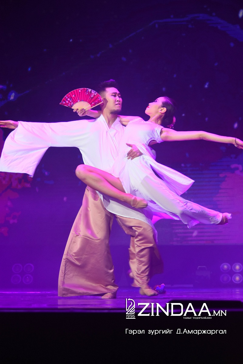 Тоглолт хоёр хэсгээс бүрдэв. Эхний хэсэгт бүсгүйчүүд Европ хэв шинжийг түлхүү агуулсан дэглэлттэй бүжгийг тайзнаа амилууллаа. Үзэгчдийн сэтгэл, мэлмийг баясгасан тэдний уян налархай, эрхэмсэг байдлыг чимж жазз дуучин Наагий уран бүтээлээ өргөсөн нь сонирхолтой зохицол болжээ.