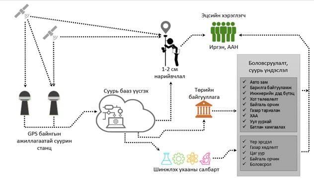 Хиймэл дагуулын байнгын ажиллагаатай станцын тусламжтайгаар өндөр нарийвчлалтай Геоидын загварыг ашиглаж эхэллээ. Ингэсээр газрын гадаргын өндөржилт, хотгор, гүдгэрийг кадастрын зурагтай хослуулан боловсруулж, авто зам, инженерийн дэд бүтэц, хот төлөвлөлтийг алдаагүй, эрсдэлгүй хийх боломжийг олгохын зэрэгцээ иргэн, хуулийн этгээдийн төсөв, санхүү, цаг хугацааг хэмнэх боломжтой боллоо.