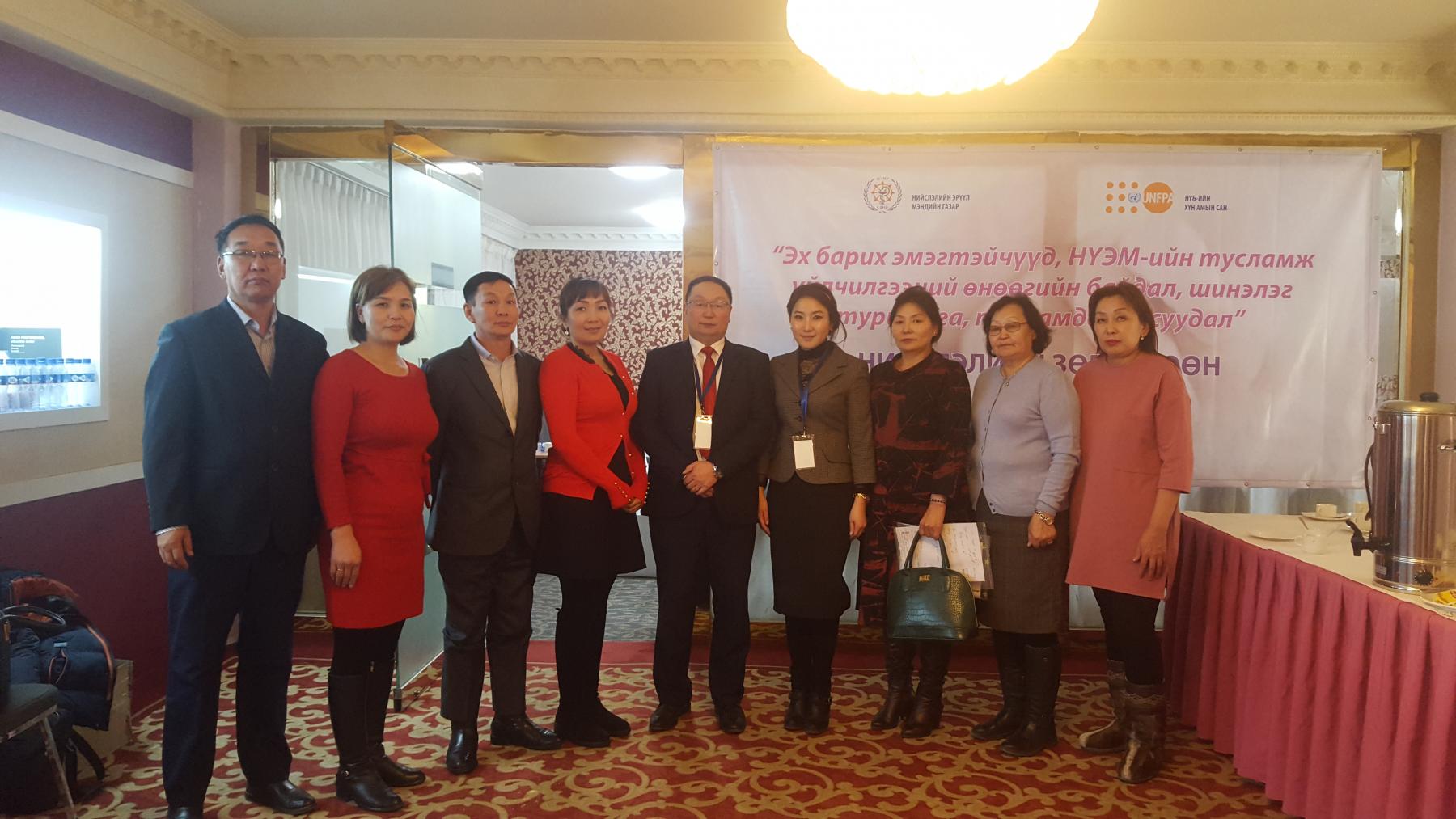 НЭМГ-ээс НҮБ-ын ХАС-тай хамтран “Эх барих эмэгтэйчүүд, нөхөн үржихүйн эрүүл мэндийн тусламж, үйлчилгээний өнөөгийн байдал, шинэлэг туршлага, тулгамдсан асуудал” зөвлөгөөнийг энэ сарын 05-ны өдөр зохион байгууллаа. Тус зөвлөгөөнд НҮБ-ын ХАС-ийн тэргүүн Каори Ишикава, НЭМГ-ын дарга Л.Төмөрбаатар, ЭМЯ-ны Эмнэлгийн тусламжийн газрын эх барих, эмэгтэйчүүдийн асуудал хариуцсан мэргэжилтэн, НЭМГ-ын Эмнэлгийн тусламжийн хэлтсийн дарга, ЭХЭМҮТ-ийн эх барих, эмэгтэйчүүдийн эмнэлгийн захирал, нийслэлийн эх барих, эмэгтэйчүүдийн ерөнхий мэргэжилтэн, амаржих газар болон дүүрэг тосгоны ЭМТ-ийн дарга нар, эх барих, эмэгтэйчүүдийн ахлах эмч-нөхөн үржихүйн эрүүл мэндийн зохицуулагч, өрхийн менежер зэрэг нийт 60 гаруй эмч, эмнэлгийн мэргэжилтэн оролцлоо.
