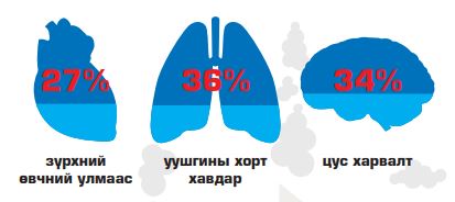 • Улаанбаатар хотод 10 нас баралт тутмын нэг нь Агаарын бохирдлын улмаас үүдэлтэй.