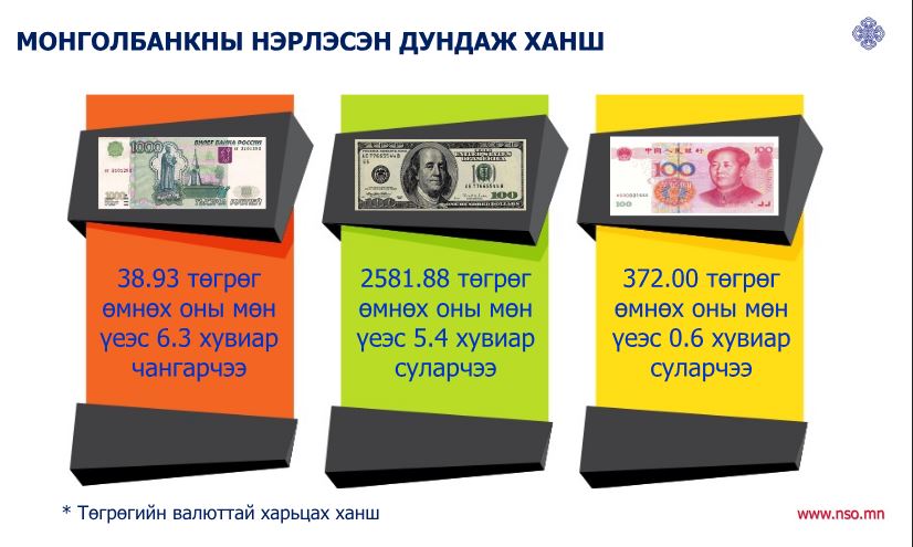Төгрөгийн валюттай харьцах Монголбанкны нэрлэсэн ханшийг харахад төгрөг ам.долларын эсрэг өнгөрсөн оны мөн үеэс 5.4 хувиар суларсан байна.