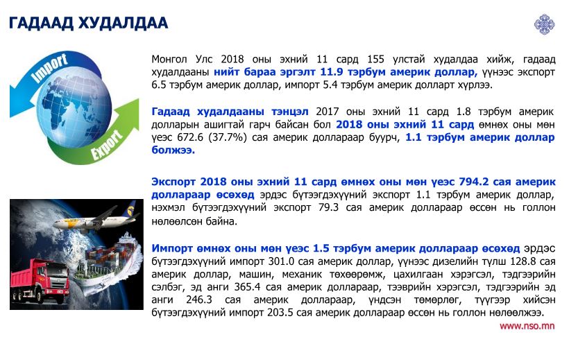 Гадаад худалдааны тэнцэл 1.1 тэрбум ам.долларын ашигтай байна.