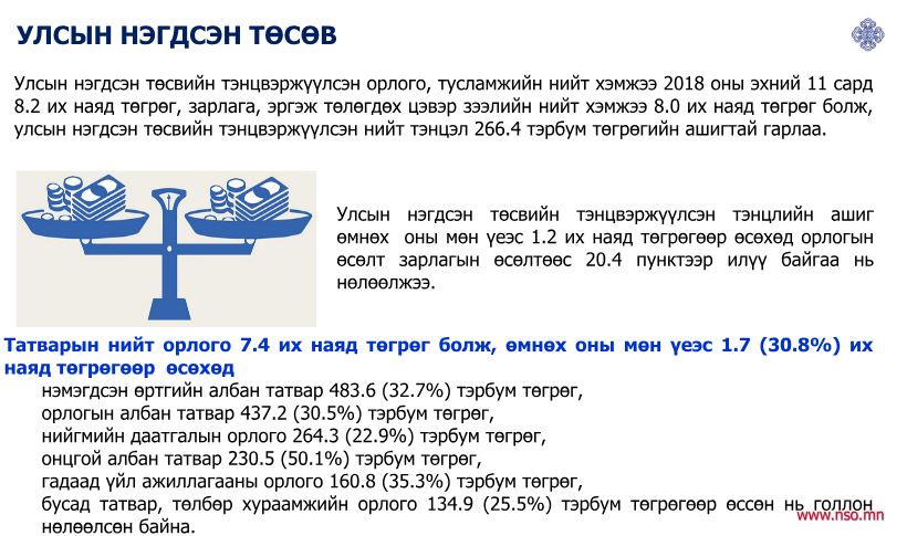 Улсын нэгдсэн төсвийн тэнцвэржүүлсэн нийт тэнцэл 266.4 тэрбум төгрөгийн ашигтай гарчээ.