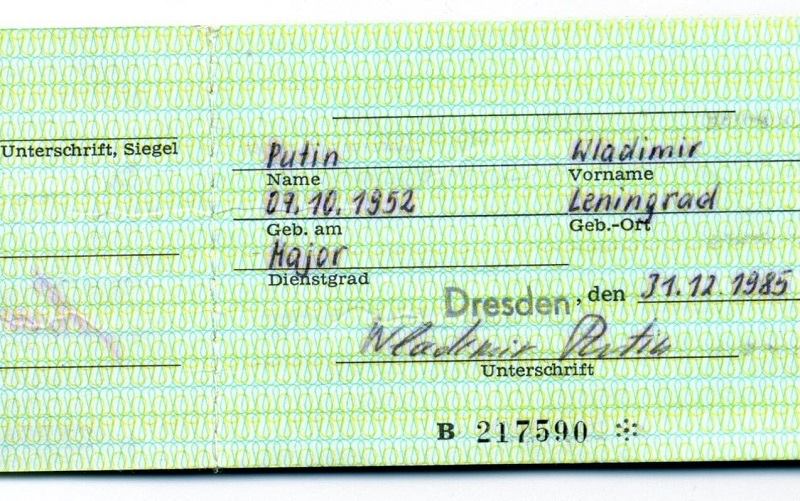 ОХУ-ын Ерөнхийлөгч Владимир Путин Зүүн Германы Улсыг аюулаас хамгаалах яаманд бүртгэлтэй байсныг гэрчлэх үнэмлэх Дресден хотын архиваас илэрчээ. Мэргэжлийн үнэмлэхийг харвал Дресден хотод бүртгэлтэй B 217590 серийн дугаартай байсан аж. Тэрээр 1986-1989 оны сүүл хүртэл Дресден хотод байнга оршин суусан байна. Хүйтэн дайны сүүлч үеэр буюу КГБ-ын офицер байхдаа Владимир Путин Зүүн Германы Улсыг аюулаас хамгаалах яаманд давхар бүртгэлтэй ажиллаж байсан нь үүгээр нотлогдох юм. Түүнийг Дресден хотод ажиллаж байхад Зүүн Германд ардчилсан хөдөлгөөн хүчээ авч, энд тэндгүй жагсаал цуглаан болж байсан түүхэн цаг үе байсан билээ.