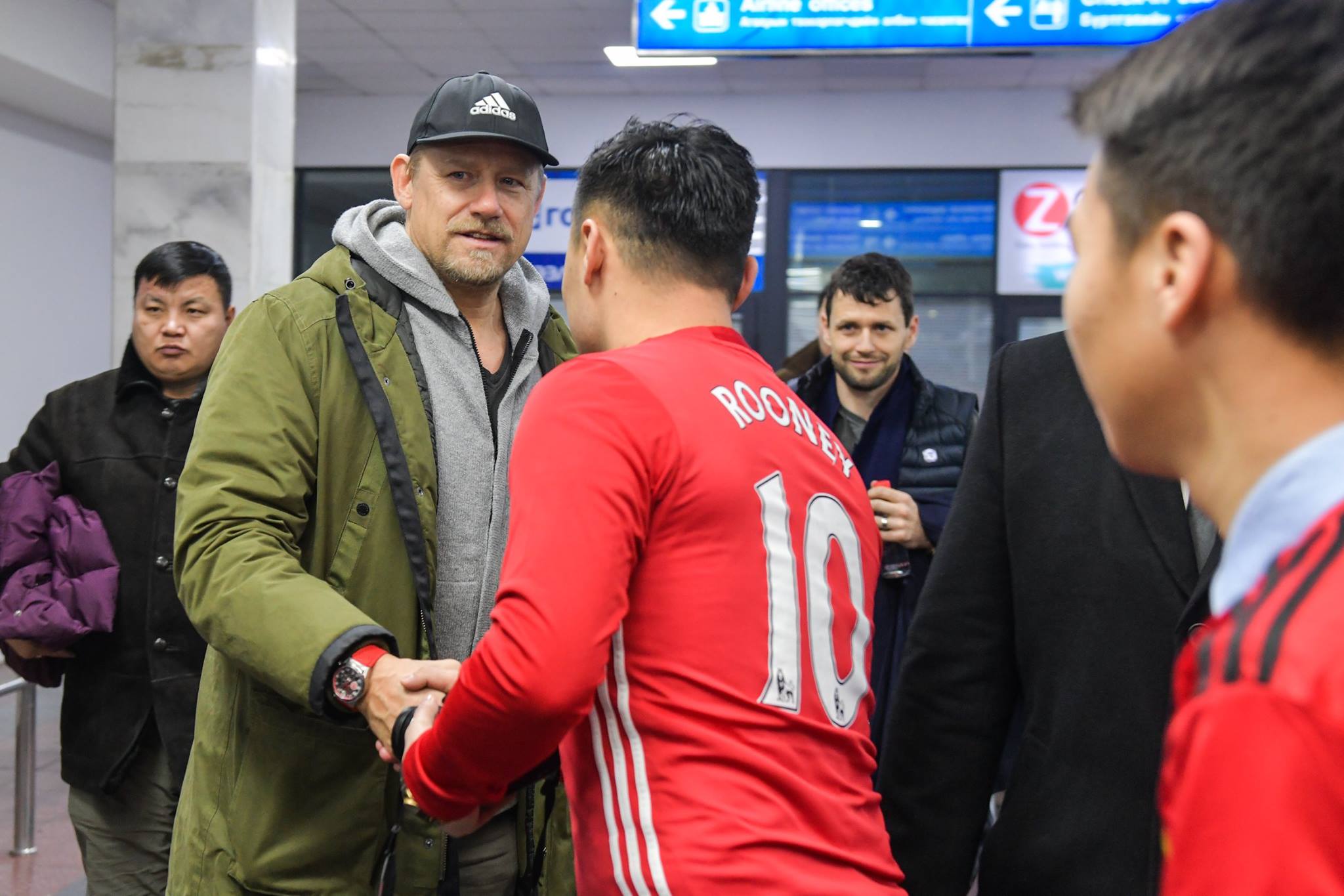 Данийн шигшээ баг болон Манчестер Юнайтед багийн амьд домог 1991-1999 оны онцлох хаалгач Петер Шмейхель өнөөдөр өглөө /2018.12.12/ "Чингис хаан" Олон Улсын нисэх онгоцны буудалд газардлаа. Түүнийг Монгол дахь Манчестер Юнайтед багийн фанатууд халуун дотноор тосон авсан юм.