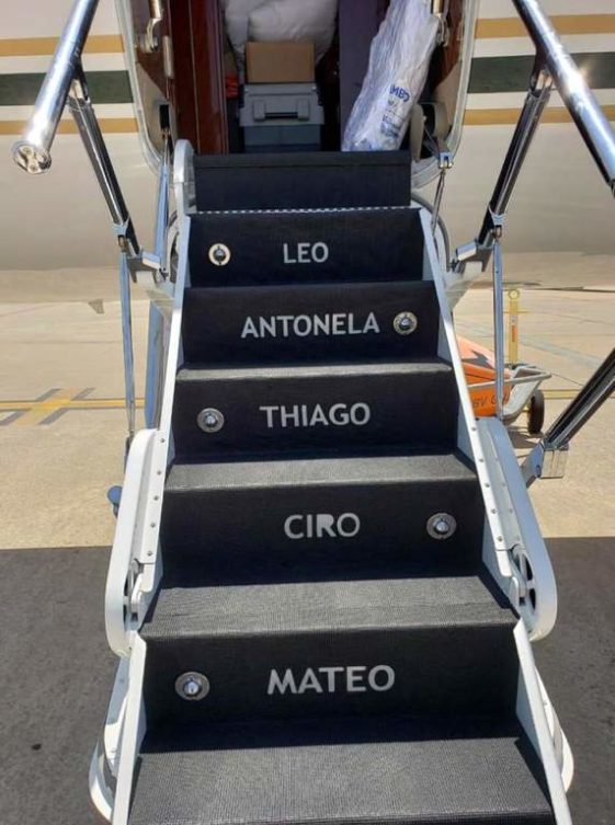 Онгоцны шатан дээр хөлбөмбөгчний өөрийнх нь нэр болон түүний эхнэр Антонелла, хүүхдүүдийн нь нэрсийг /Тиаго, Сиро болон Матео/ бичсэн байна. Онгоцоо байнгын бэлэн байлгах үүндээс тэрбээр Испаны Сан-Фернандо хотод өөрийн гэсэн ангар бариулж байгаа гэнэ.