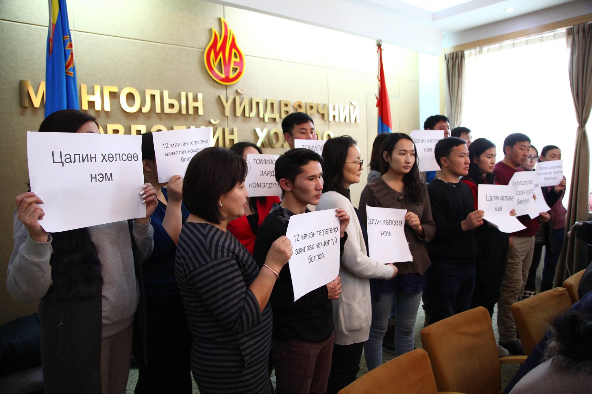 -Бид дөрвөн сарын өмнө орон даяар ажил хаялт зохион байгуулж, зөвшилцөлд хүрсэн. Гэтэл асуудал шийдэгдсэнгүй. Боловсрол, шинжлэх ухааны салбарын 70-80 мянган хүний асуудал яригдаж байна. 2018 оны аравдугаар сарын 1-нээс нэмэх долоон хувийн цалингийн нэмэгдэл болох нийт 10 тэрбум төгрөгийг одоо болтол олгоогүй байна.