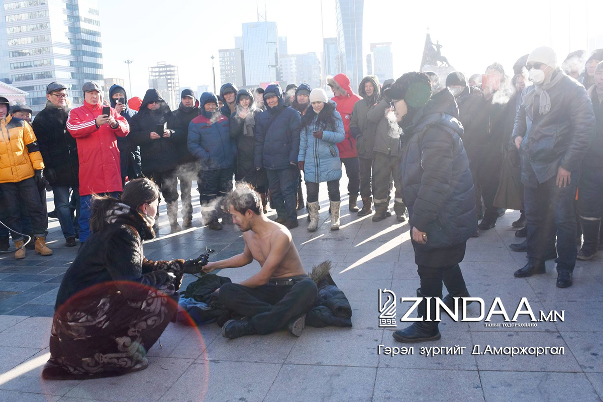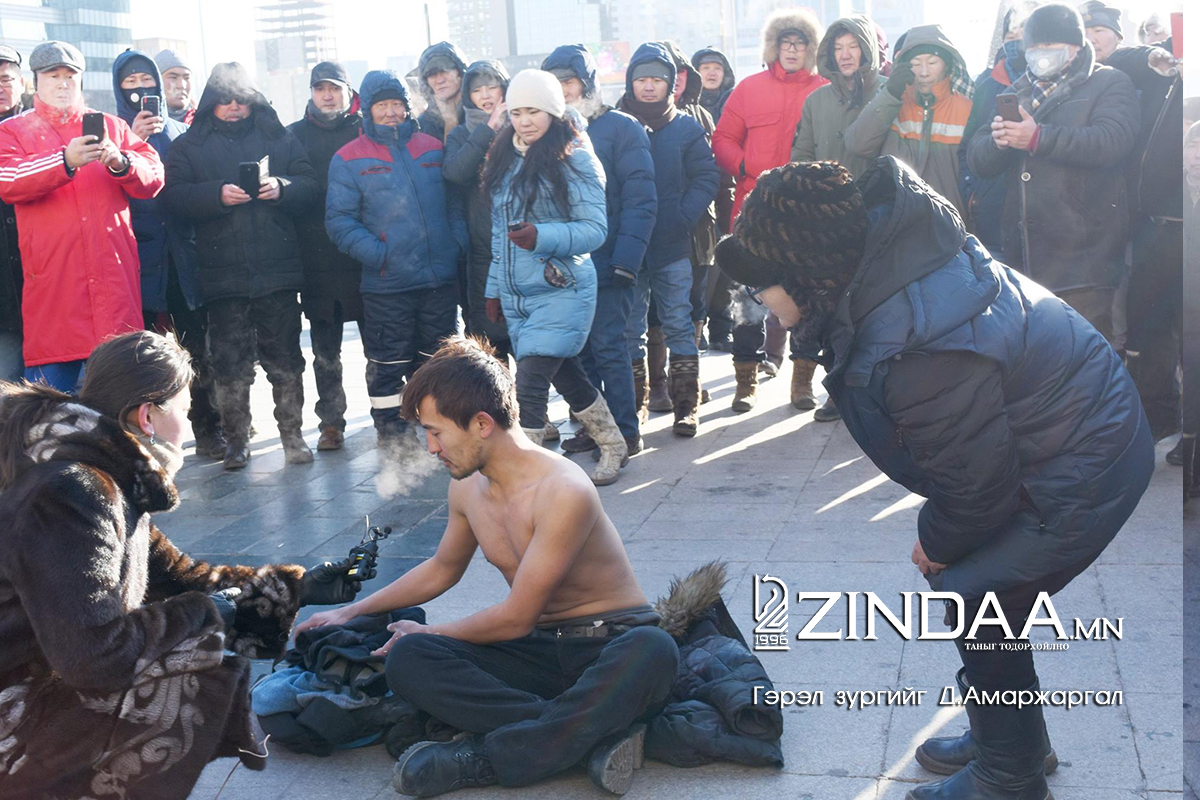 Энэ үеэр Б.Цолмон гэх 34 настай залуу хувцсаа тайлан, тэмцлээ илэрхийлэв. Түүнд хажууд нь байсан хүмүүс санаа тавьж, “Залуу хүн эрүүл мэндээрээ хохирч болохгүй” хэмээн хувцсыг нь өмсүүлсэн юм.