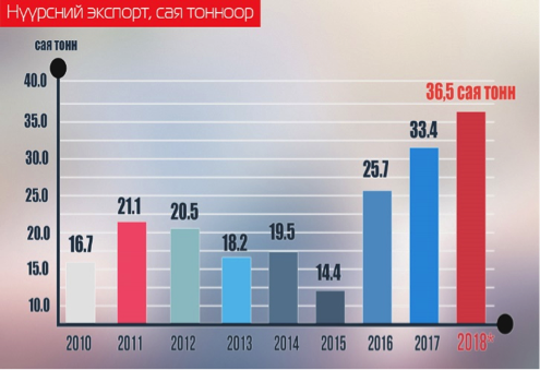 Монгол Улсын Ерөнхий сайд У.Хүрэлсүхийн БНХАУ-д хийсэн айлчлалаар нүүрсний экспортын хэмжээг нэмэгдүүлэх, хил гааль дээр үүсээд байсан асуудлыг шийдвэрлэх, боомтын нэвтрэлтийг сайжруулах зэрэг олон асуудлыг шийдвэрлэсэн. Эдгээр яриа хэлэлцээрийн үр дүнд 2017 оны сүүлийн хагас, 2018 оны эхний улирал саараад байсан нүүрсний экспорт огцом нэмэгдэж, Монгол Улс түүхэндээ анх удаа 36.5 сая тонн нүүрс экспортолж байна.