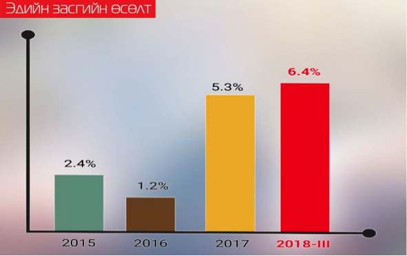 НЭГ. Монгол Улсын эдийн засаг сүүлийн 4 жилийн хугацаанд хамгийн өндөр хувиар буюу 6.4 хувиар өслөө