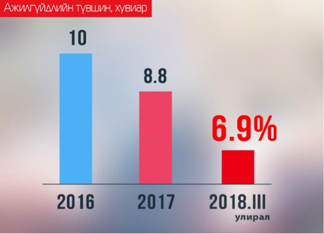 11.6 хувьд хүрээд байсан ажилгүйдлийн түвшин сүүлийн 3 жилийн хамгийн бага түвшин буюу 6.9 хувьд хүрлээ. Хөдөлмөр эрхэлдэг хүний тоо 2018 оны 3 дугаар улиралд өмнөх оноос 50 мянгаар нэмэгдэж, хөдөлмөрийн зах зээлд эрэлт өсөж, ажилгүйдэл буурснаар дундаж цалин 2017 оноос 8 хувиар өссөн. Эдийн засаг өссөнөөр цалин нэмэгдэж, хувийн хэвшлийг дэмжсэний зэрэгцээ мал аж ахуйн гаралтай түүхий эдийн үнэ өссөн. Эдгээр өөрчлөлтийн дүнд өрхийн орлого 15 хувиар өсөөд байна.