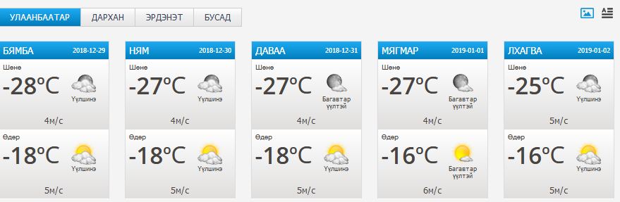 Улаанбаатар хотын цаг агаарын төлөв байдлын 5 хоногийн мэдээллийг зургаас харна уу!