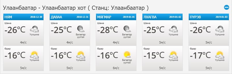 Хуучин он улирч шинэ оноо угтах эдгээр өдрүүдэд та дулаан хувцаслаарай. Ойрын өдрүүдэд цаг агаарын урьдчилсан төлөв байдлыг хүргэж байна.
