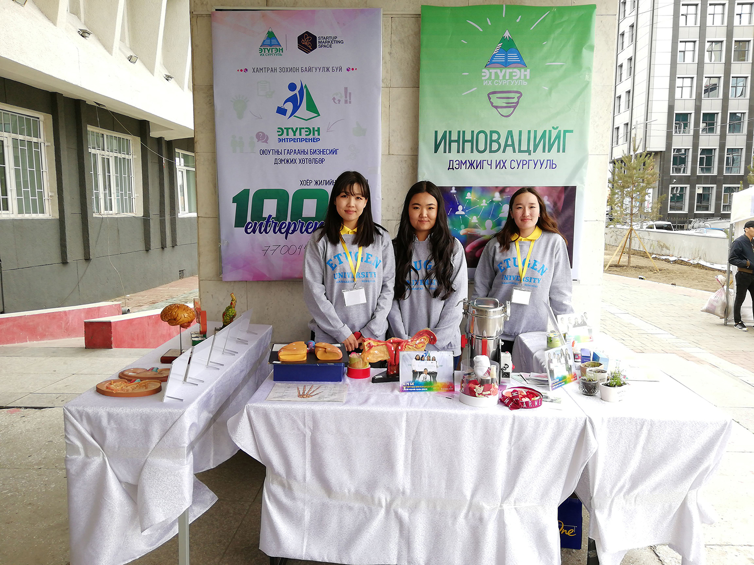 3. Их дээд сургуульд энтрепренёр соёлыг түгээх, оюутан залуус сурaхын хажуугаар гарааны бизнес эрхлэх боломжийг олгох зорилгоор Этүгэн их сургуультай хамтран “Этүгэн энтрепренёр” хөтөлбөрийг 2 жилийн хугацаатай хэрэгжүүлэхээр гэрээ байгуулан хамтран ажиллаж байна. 2018 оны хичээлийн жилд  5 удаагийн элсэлтээр 234 оюутныг сургалтанд хамруулан 8 гарааны бизнест 12,000,000 төгрөгийн гарааны санжүүжилтыг олгоод байна. https://www.facebook.com/etugen.entrepreneur/