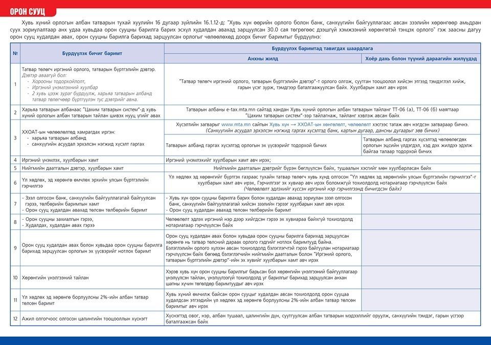 ОРОН СУУЦ ХУДАЛДАН АВСАН ИРГЭНИЙ БҮРДҮҮЛЭХ МАТЕРИАЛ: