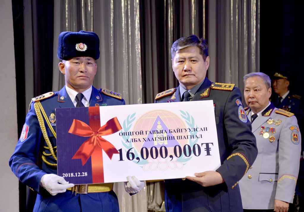 Монгол улсын Шадар сайдын 2018 оны 11 дүгээр сарын 30-ны өдрийн 118-р тушаалаар Онцгой байдлын алба хаагчид “Онцгой гавъяа байгуулсан тохиолдолд мөнгөн урамшуулал олгох” тухай журмыг баталсны дагуу 2018 оны Онцгой байдлын үйл ажиллагааны тайлангийн хурлын үеэр гурван алба хаагчийг тус шагналаар шагнаж, 16 сая төгрөгний мөнгөн урамшуулал олгосон юм. Эдгээр алба хаагчдын нэг болох НОБГ-ын Нийслэлийн аврах анги 105-ын аврагч, ахлах ахлагч Х.Цогбадрах нь эр зориг, мэргэжлийн ур чадвараараа шилдэг нь байж, Онцгой гавъяа байгуулсан алба хаагчаар тодрон, энэхүү нэр хүндтэй шагналын эзэн болсон байна.