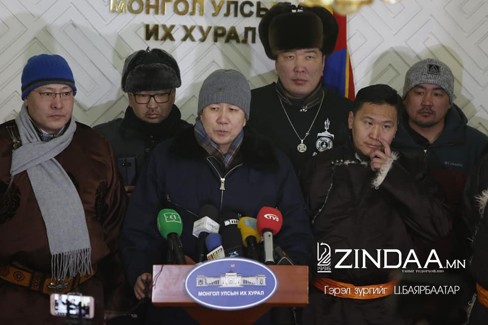 Тэгвэл жагсаалыг зохион байгуулагч УИХ-ын гишүүн Л.Болд, Ж.Батзандан, Т.Аюурсайхан, Л.Оюун-Эрдэнэ болон жагсагчдыг төлөөлж дөрвөн хүн УИХ-ын дарга М.Энхболдтой уулзахаар дөнгөж сая албан өрөөнд нь орлоо. Тэд УИХ-ын дарга М.Энхболдыг нэн даруй огцрохыг шаардаж байгаа билээ.