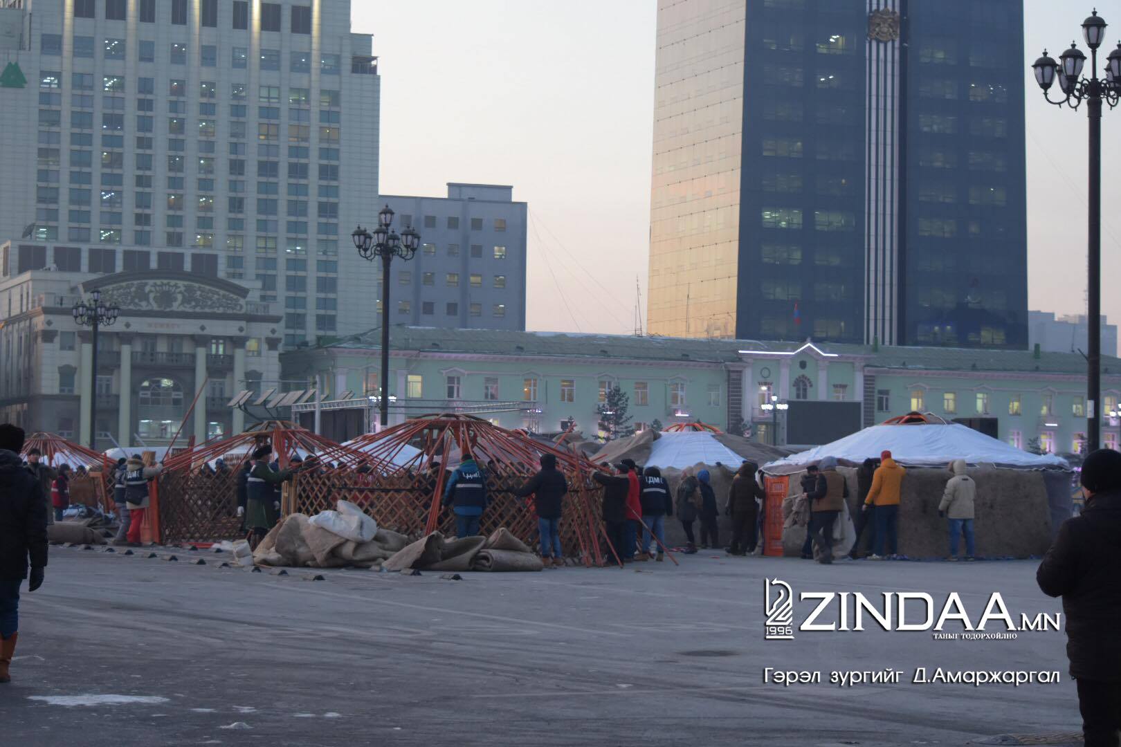 Тиймээс жагсаал зохион байгуулагчид жагсаалаа суултаар үргэлжлүүлж, Сүхбаатарын талбайд 50 гэр барихаа мэдэгдсэн.