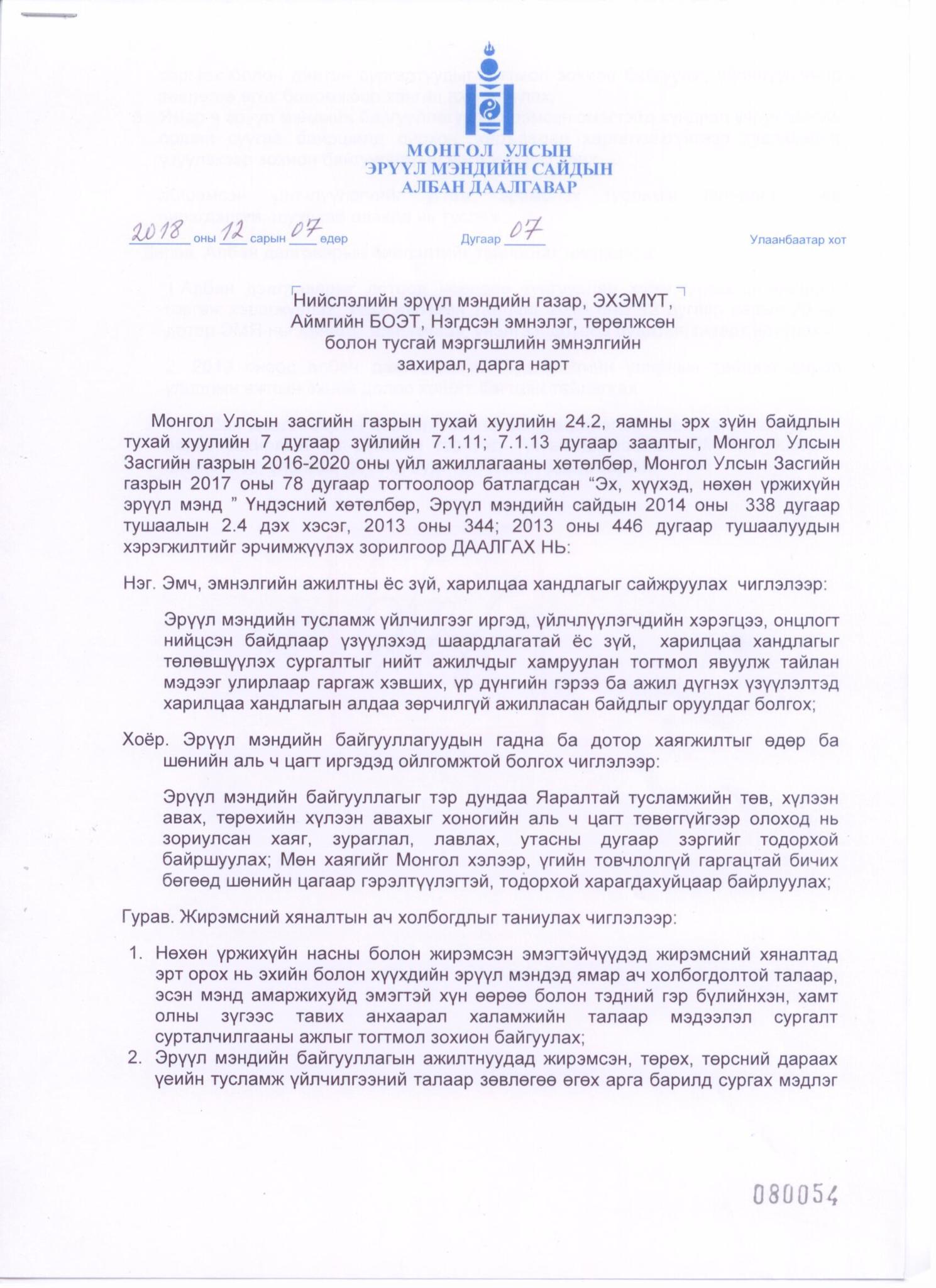 Сар хүрэхгүй хугацааны өмнө буюу өнгөрөгч 2018 оны арванхоёрдугаар сард ЭХЭМҮТ-д төрөхөөр ирсэн эмэгтэй тасаг андуурч орсны улмаас эмнэлгийн гадаа буюу таксинд амаржсан тухай асуудал гарч байсан. Энэхүү үйл явдалтай холбогдуулан Эрүүл мэндийн сайд Д.Сарангэрэл Нийслэлийн эрүүл мэндийн газар, ЭХЭМҮТ, аймгуудын нэгдсэн эмнэлгийн захирал, дарга нарт албан даалгавар өгч, аль ч эрүүл мэндийн байгууллагууд жирэмсэн эмэгтэйд хүндрэл учруулахгүй, оршин суугаа байршилд ойрхон, харьяалал харгалзахгүйгээр тусламж үзүүлэх  зохион байгуулалтын арга хэмжээ авахыг тусгасан байдаг. Мөн эрүүл мэндийн байгууллагуудын гадна ба дотор хаягжилтыг өдөр ба шөнийн аль ч цагт иргэдэд ойлгомжтой байлгахыг чиглэл болгосон. Гэвч өнөөдрийг хүртэл Эрүүл мэндийн сайдын дээрх тушаал, даалгавар хөрсөн дээрээ бууж хэрэгжихгүй байгаагаас үүдэн төрж амжаагүй нэгэн амь үгүй боллоо. Энэ хэрэгт хэн хариуцлага хүлээх вэ!
