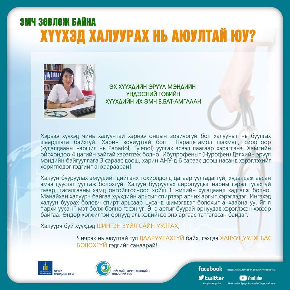 Хүүхдийн халуун өндөр хэмд хүрсэн тохиолдолд эмчид яаралтай хандаарай