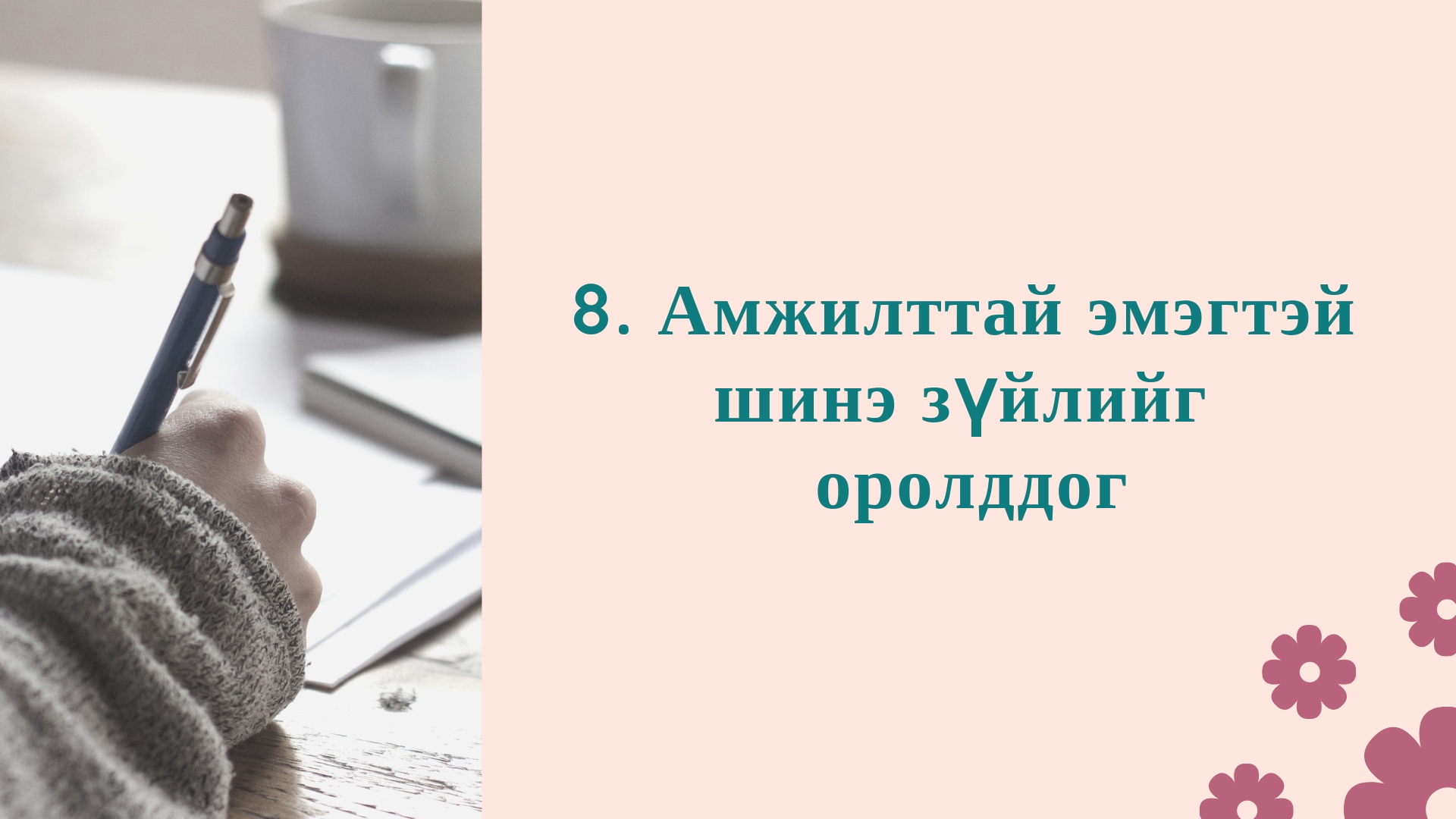 Та ажиллах хэнээтэй байсан ч өөртөө амрах цаг заавал гаргаарай. Амжилттай эмэгтэй өөрийн завгүй ажлын хуваарьтаа ч амрах цагийг оруулдаг байна. Иога, бясалгал, дугуй унах, зураг зурах зэрэг өөрийгөө халамжлах, хайрлах зүйлсийг хийж хэвших нь тэдний хувьд нэн тэргүүнд тавих зүйл юм.