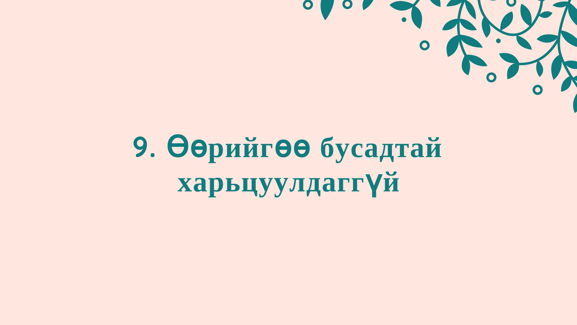 Өөр эмэгтэйчүүдийг өрсөлдөгч гэж харахаас илүү амжилттай яваа эмэгтэй тэднийг бизнесийн хамтрагч, найзууд гэж хардаг. Тэд бусдыг харьцуулах нь ямар ч утгагүй зүйл гэж үздэг бөгөөд харин үүний оронд хамтрах нь ашигтай гэдгийг мэднэ. Бусдын чадварыг өөрийгөө хөшүүрэгдэх гол зэвсэг гэж эерэг өнцгөөс хараарай.