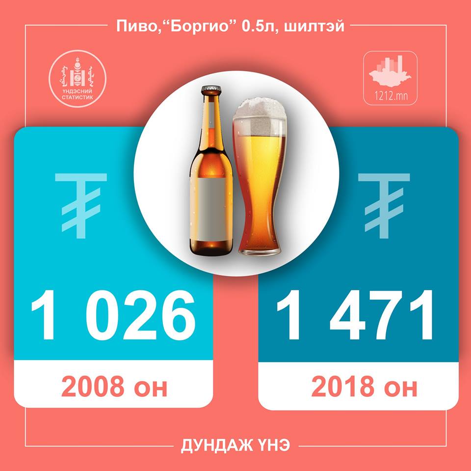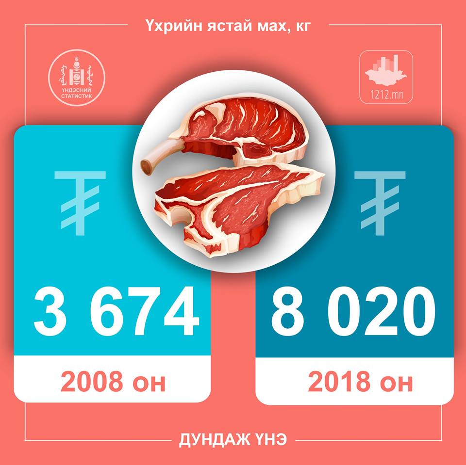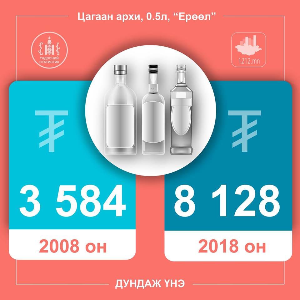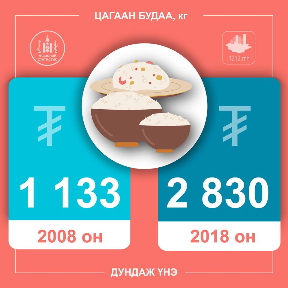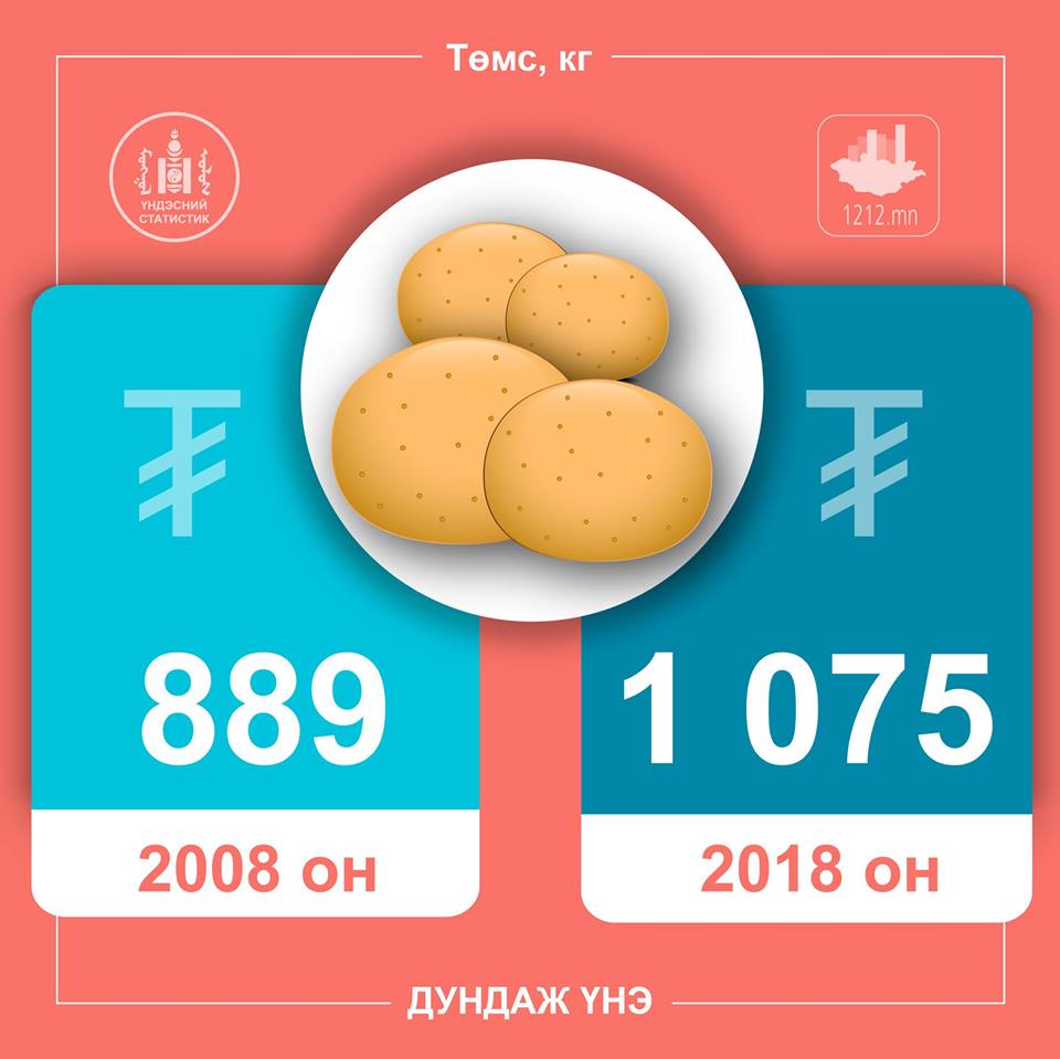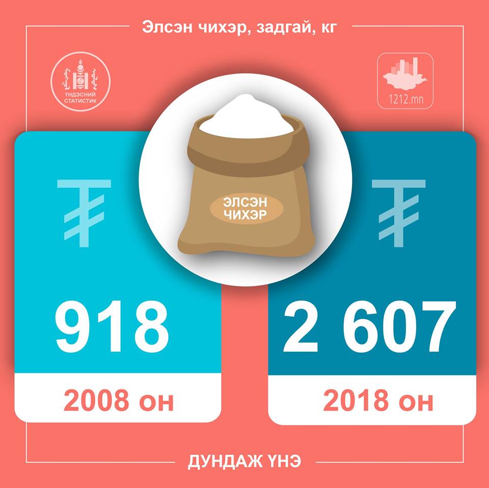 Зарим нэр төрлийн бүтээгдэхүүний үнийн 10 жилийн өөрчлөлтийг харьцуулан хүргэж байна. Жишээ нь, талхны үнэ 2008 онд 592 төгрөг байсан бол 2018 онд дунджаар 1173 төгрөг болж нэмэгджээ.