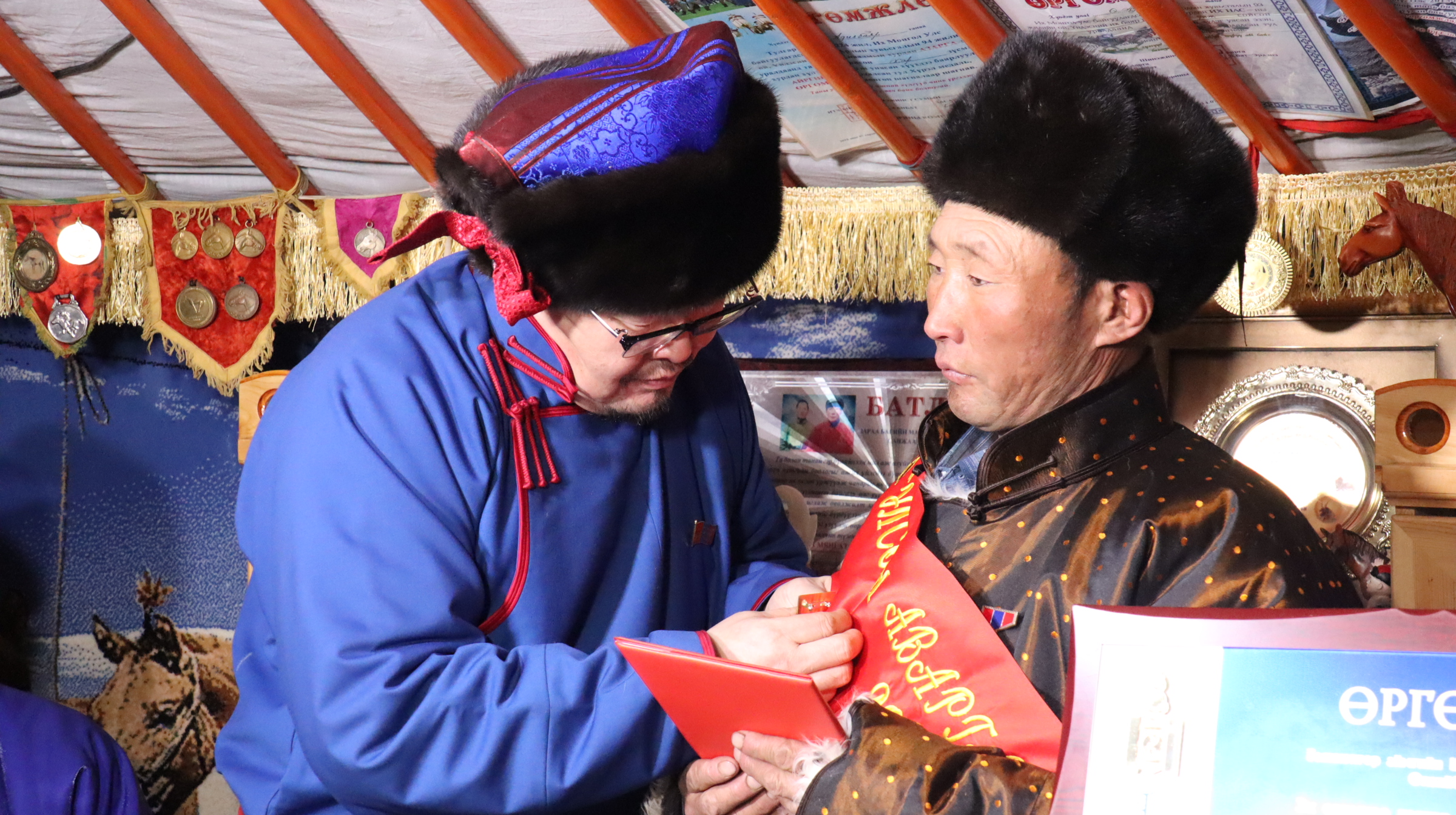 Засгийн газрын Хэрэг эрхлэх газрын дарга Г.Занданшатараар ахлуулсан ажлын хэсэг өнгөрсөн амралтын өдрүүдэд Баянхонгор аймгийн Баянлиг, Баянговь, Жинст зэрэг суманд ажиллалаа. Тэрбээр гахай жилийн босго дээр ажил, хөдөлмөрөө төрдөө үнэлүүлж "Улсын аварга малчин", "Улсын аварга саальчин", "Улсын аварга тариаланч"-аар шагнуулсан малчдад цол, тэмдгийг нь гардуулж өглөө.
