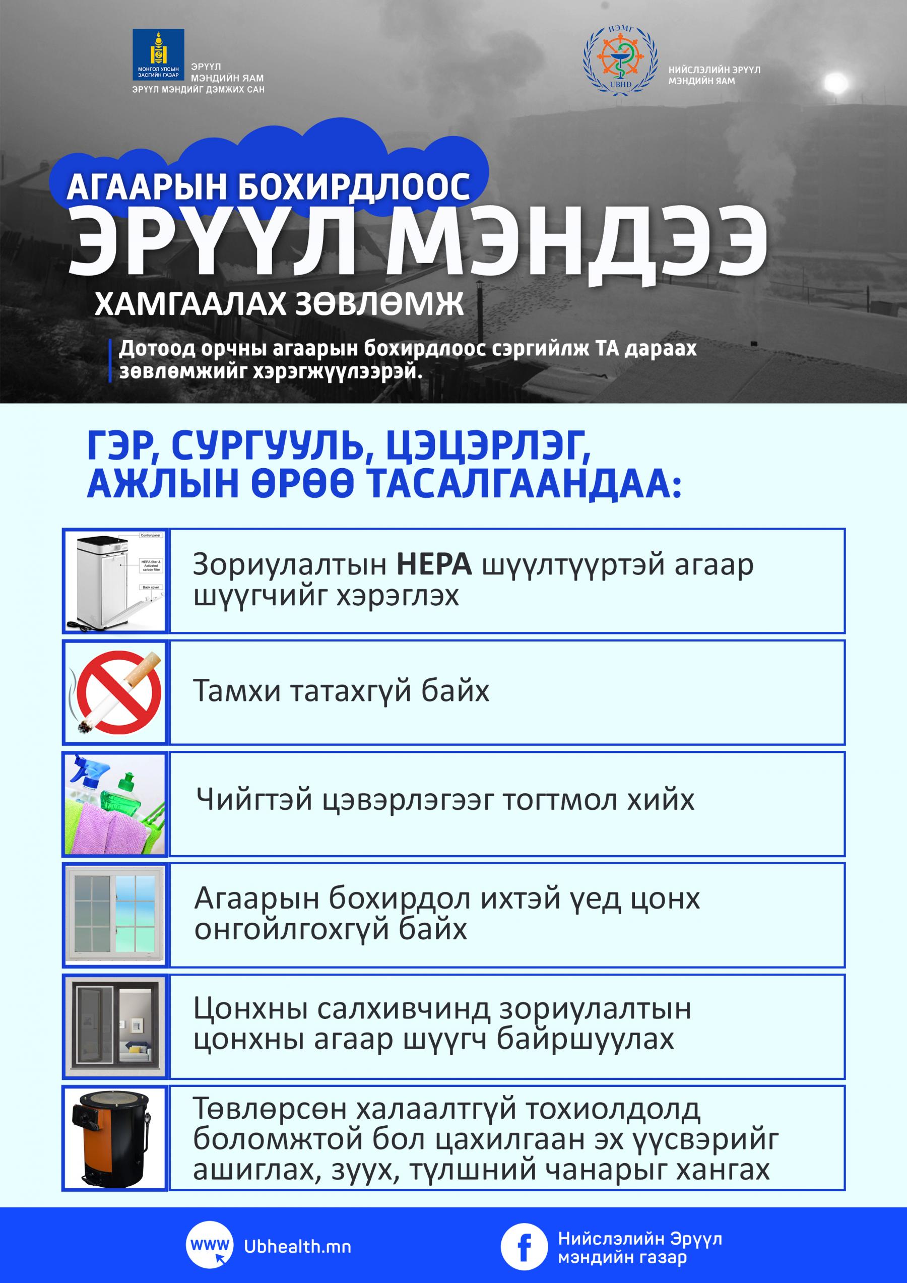 Агаарын бохирдлоос эрүүл мэндээ хамгаалах аргууд