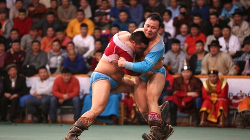 Барилдаанд улсын аварга Ч.Санжаадамба, С.Мөнхбат, Н.Батсуурь нарын аваргууд манлайлан зодоглож байна.