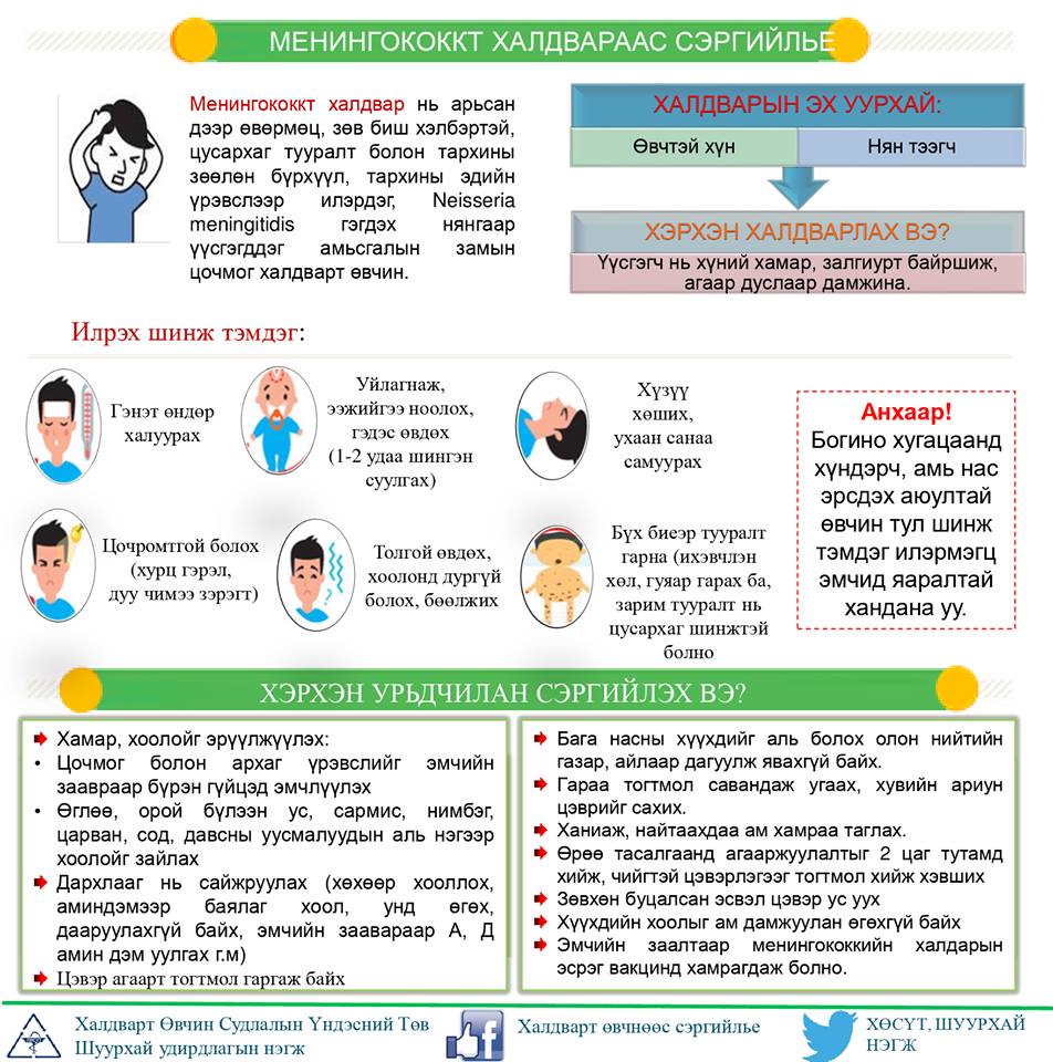 Менингококкт халдвар нь амьсгалын замаар дамжин халдварладаг тул дэгдэлт хэлбэрээр тархвал нас баралт өндөртэй өвчин болохыг эрүүл мэндийн байгууллагууд анхааруулж байна.