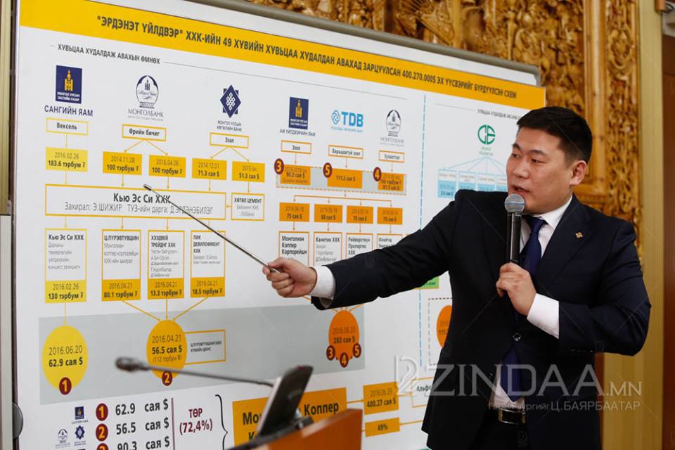 ЗГХЭГ-ын дарга Л.Оюун-Эрдэнэ "Засгийн газрын шуурхай ажлын хэсэг одоо “Эрдэнэт” үйлдвэр рүү хөдөлнө. "Эрдэнэт" үйлдвэрт тохиолдсон зүйл нь Зүүн өмнөд Азид түгээмэл ашиглагддаг мөнгө угаалтын систем. Ялангуяа ардчилал бэхжиж байгаа улсад ажиглагддаг жижиг луйвар. Энэ бол хууль хэрэгждэг улсад аль эрт шийдэгдсэн байх ёстой асуудал байсан. Аливаа асуудлыг шийдэж байх нь Засгийн газрын үүрэг юм. Тийм учраас Засгийн газар өөрийнхөө эрх үүргийн хүрээнд ажиллаж байна" гэсэн юм.