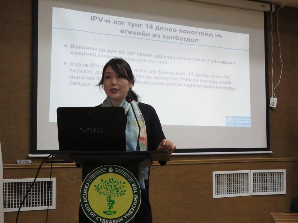 Вакцин дархлаажуулалтын "Глобал Алянс" сангийн санхүүжилтээр ЭМЯ, НЭМГ, ХӨСҮТ-өөс хамтран халдварт саагийн эсрэг идэвхигүйжүүлсэн вакциныг дархлаажуулалтад нэвтрүүлэх бэлтгэл ажлын сургалтыг дүүрэгчилсэн байдлаар зохион байгуулж эхэллээ. Энэ хүрээнд өнөөдөр Сонгинохайрхан дүүргийн ӨЭМТ, эрүүл мэндийн төвийн эмч, сувилагч, вакцинатор болон нийгмийн ажилтан, бусад холбогдох мэргэжилтнүүд сургалтанд хамрагдаж байна. Сургалтад хамрагдсанаар дархлаажуулалтын үйл ажиллагааг гүйцэтгэдэг эмч, сувилагч, нийгмийн ажилтан, халдвар судлагч болон бусад холбогдох мэргэжилтнүүдийн мэдлэг хандлага сайжирч, шинэ вакциныг нэвтрүүлэх үйл явц амжилттай хэрэгжих юм.