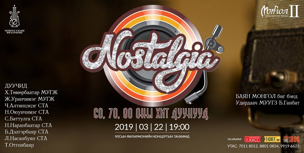Тэгвэл тус чуулгынхан үүсэн байгуулагдсаны 50 жилийн ойн хүрээнд зохион байгуулж буй цуврал арга хэмжээнүүдийн нэг нь “Nostalgia” тоглолт юм. Та бидний сэтгэл зүрхэнд хоногшсон 60, 70, 80 оны ХИТ ДУУНУУД-аас толилуулах уг тоглолт 2019 оны 03-р сарын 22-нд 19:00 цагт Улсын Филармонийн концертын танхимд ганцхан удаа тоглох гэж байна. Тоглолтын хөтөлбөрт хагас зуун жилийн хугацаанд бүтээн туурвисан урын сан дахь бүтээлүүдээсээ шигшиж шилмэл бүтээлүүдээсээ үзэгч, сонсогчдодоо хүргэх аж.