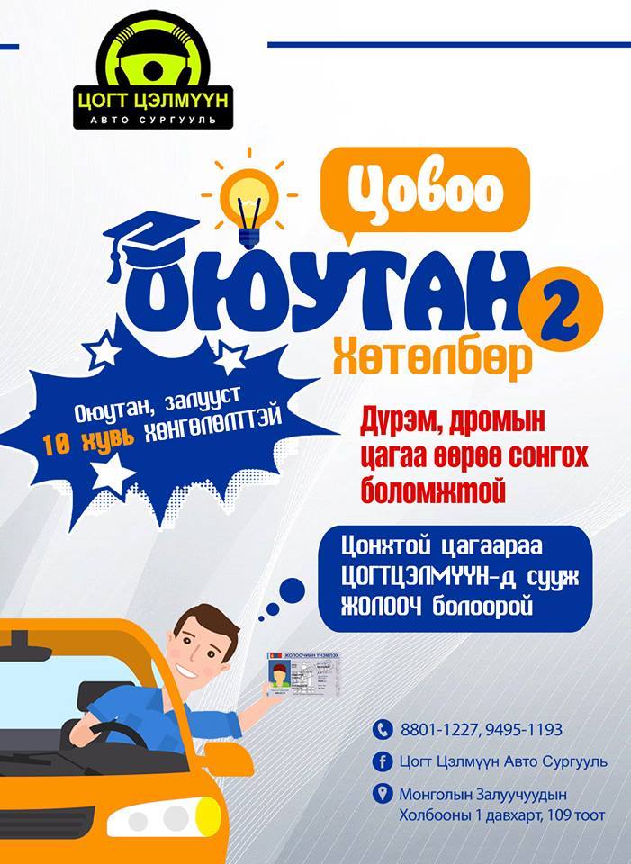 Монголын залуучуудын холбооны дэргэдэх "Цогт цэлмүүн" авто сургууль өнгөрөгч жил оюутан, залууст зориулан дүрэм, дромын цагаа өөрөө сонгон суралцах боломжтой "Цовоо оюутан" хөтөлбөрийг "Цонхтой цагаараа жолооч болцгооё" уриатайгаар амжилттай хэрэгжүүлсэн билээ. Энэ жил оюутан, залуучууд, хамтрагч их сургуулиуд, байгууллагуудын хүсэлтээр "Цовоо оюутан-2" хөтөлбөр дахин хэрэгжихээр боллоо.