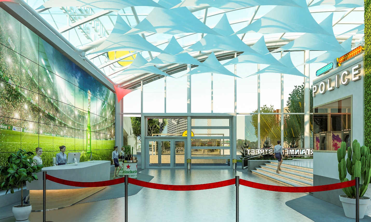 Төсөл хэрэгжих газрын дээврийг орчин үеийн дэвшилтэт технологиор дээвэрлэж, хойд болон урд хэсгийг шилэн фасадаар битүүлж, халуун, хүйтэн агааржуулалтын хоолойг байрлуулснаар өвөл нь дулаахан, зун нь сэрүүхэн байх нөхцөлийг бүрдүүлнэ. Мөн тус гудам руу орох хэсэгт лобби байрлах бөгөөд зүүн талд нь 450 хүний хувцасны шүүгээ /locker/ баруун талд нь эвэнт хийх талбайг төлөвлөсөн байна.
