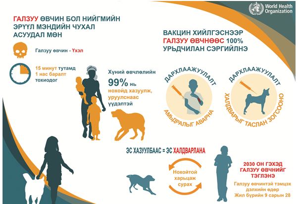Монгол улсын хэмжээнд 1972 оноос хойш нийт галзуугийн хүний өвчлөл 36 бүртгэгдсэн бөгөөд 1978-1992 оны хооронд Улаанбаатар хотод нийт 5 хүн галзуу нохойд хазуулж, уруулснаас өвчилж, нас барсан. Галзуу өвчнийг үүсгэгч вирус нь хүн, мал, амьтны мэдрэлийн тогтолцооны гол төв эрхтэн болох тархийг гэмтээн, улмаар нас баралтад хүргэдэг аюултай. Өнөөг хүртэл галзуу өвчнийг эмчлэх арга нээгдээгүй хэвээр байна.