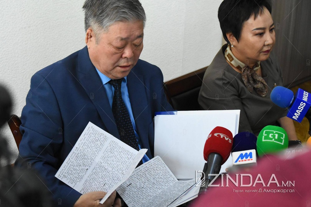 Энэ зүйл ангийн утга нь юу гэвэл, Амгаланбаатар Содномдаржаа хоёр энэ хэргийг үгсэн нийлж зохиож төрийн дайсан болж, худлаа хэрэг зохиож, төрийг хуурч байна гэдэг үгийг энэ дөрвөн байцаагч гаргасан. Яагаад гаргасан гэвэл энэ анхны байцаагч хорих ажиллагаагаа өөрөө явуулж, гүйцэтгэх ажлын өөрийнхөө хүнийг өөрөө наад Содномдаржаадаа өрөөн дотроо байж байхдаа сайн хэлж, энэ гурван хүний өөдөөс нь дайр! Тэхгүй бол чи ямар ч гэмгүй хүн цаазаар авахуулах гээд байна. Хайран сайхан хүүхдүүд ч, хайран сайхан амьдрал хүнд гутгүүлж үхэж байсан доор өөрсдийг нь гүтгэ гээд л доор гүйцэтгэх ажлын залуу хэлнэ. Дээр гарвал байцаагч өөрөө ятгана. За энэ хоёр хүний үгийг 18 өдөр сонсож суугаа хүн төрийн цагдаа хүн худлаа хэлж хүнийг хэрэгт хийхгүй. Энэ Бархасбадь гэдэг хүн худлаа хэлэх хүн биш, гэтэл нь надад бодогдуулж, тийм хэмжээнд хүртэл намайг ятгаад, тэр нэг аюултай 2015 оны 9-р сарын 18-ны өдөр ингэж сэтгэл санаа хямарсан үедээ надад нэг л мансууруулах эм дээр нь өгөхөөр би хүний үгийг ёстой нэг тоть аятай хэлдэг болчихдог юм байна лээ. Тэгээд болоо! Тэгж хэлүүлж аваад л одоо чи нар үзэхгүй энэ хэрэгт бүх оролцсон хүнээ хэл гээд л шууд тулгадаг. Та бүхнийгээ ирэх болгонд би энэ хүмүүсийн хорлосон бүгдийг ярьдаг. Сая ирэхэд чинь хүртэл ярьсан. Ингээд хооронд нь ямар ч хэрэг хийгээгүй хүмүүсийг алсан болгоод шалгаж байх хугацаанд нөгөө хэрэг нь таарахгүй болохоор ахиж байцаалт явуулсан. Энэ ахиж байцаалт явуулсан гэдгийг би 2017 оны 10-р сарын 24-нд ирэх өдөр чинь хэлж байсан. Байцаалт 2016 оны 1 -р сарын 28-нд явуулсан. Би 1998 онд цэргийн комиссоор орсноо хэлсэн. Тэгээд удалгүй 2016 оны 2-р сарын 14-нд Бямбажав байцаагч ирээд за Содномдаржаа чи цэргийн комиссоор орсон байна. Чи их азтай хүн юм. одоо чи бурхан номоо уншаад тайван ч сууж бай гээд явсан. Тэгтэл 2016 оны 3-р сарын 11-нд Бямбажав байцаагч ирээд л чамайг тэнэг юм уу гээд жаахан ажиллагаа явуулсан чинь чи өөрөө маш айхтар хүн байна. Та нарын хийсэн худлаа хэргийг чинь мэдэж байна. Та нар төрийг хуурч худлаа хэрэг зохиохгүй шүү. Та нарын үгсэн нийлсэн чинь нотлогдсон гээд намайг загнаад тэгээд л яваад өгсөн. Удалгүй 2016 оны 4-р сарын 8-нд Бархасбадь гэдэг байцаагч ирээд чи цэргийн комиссоор орсон гэдгээ ямар сайн мэдэж байна вэ гэсэн. Би тэгэхээр нь 1994 оноос хойш би цэргийн комиссоор жилд 2 удаа ордог байсан. Жил болгон би ар гэрийн гачигдлаар цэргийн албанаас хасагддаг байсан. Харин 1998 оны 10-р сард би цэргийн комиссоор орсноо, энд байх хугацаандаа өдөр болгон бодоод олсон юмаа гэсэн. Би удалгүй 2016 оны 4-р сарын 10-ны үеэр байцаагч Бархасбадь гэдэг хүн пилакрафик гэдэг шинжлэх ухааны шинжилгээ аваад явсан. Тэр шинжилгээнд надад таарах юм байхгүй болохоор намайг ахиад оруулах шинжлэх юм байвал оруулаад өг. Би эндээс гармаар байна гэсэн. Тэгээд 2016-оны 6-р сарын 2-нд манай өмгөөлөгч Л.Мөнхтөр гэдэг хүн ирээд энэ хүний үгэнд ороогүй бол гэртээ харих байлаа. Чи цэргийн комиссоо ямар сайн мэддэг юм гэсэн. 2016 оны 7-р сарын 17-нд Бархасбадь байцаагч ирээд намайг дуудаад, чамайг одоо шар хаданд аваачиж хэвтүүлнэ. Төрийг хуурсан гэж хэлсэн.
