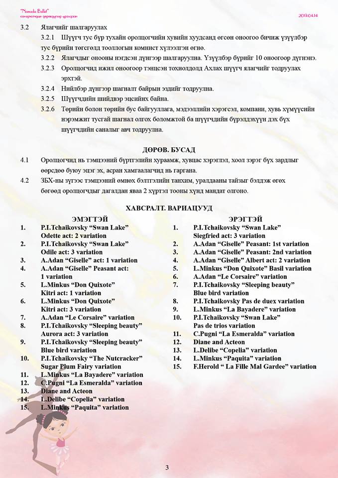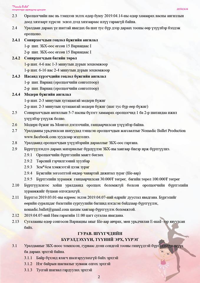 Уралдааныг дөрөвдүгээр сарын 14-ны өдөр Нийслэлийн "Улаанбаатар" чуулгийн тайзнаа зохион байгуулахаар болсон байна. Балетын урлагаар хичээллэж сонирхдог хэн бүхэн оролцох боломжтой. Бүртгэл дөрөвдүгээр сарын 7-ныг өдрийг дуустал явагдана.